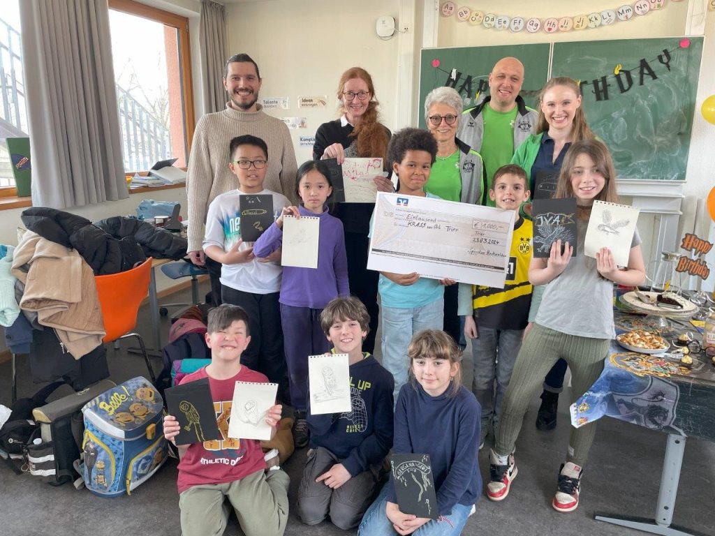 Trier. Beim KRASSen Kunst-Kindergeburtstag unter dem Motto „Harry Potter“ besuchten uns zwei Mitglieder des Spiridon Hochwald e.V. und brachten uns etwas Tolles mit: einen Scheck über 1000€!