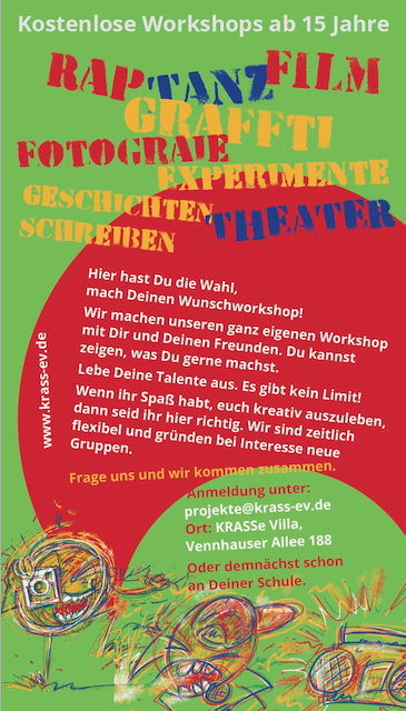 Mit dem Projekt „Panakia – Du bist nicht allein!“ richtete sich KRASS e.V. an Kinder und Jugendliche, die während der Pandemie oder aufgrund ihres sozioökonomischen Hintergrunds besonders stark belastet waren. Ziel war es, ihnen durch Kunst neue Wege der Verarbeitung, Begegnung und Selbstwirksamkeit zu eröffnen.